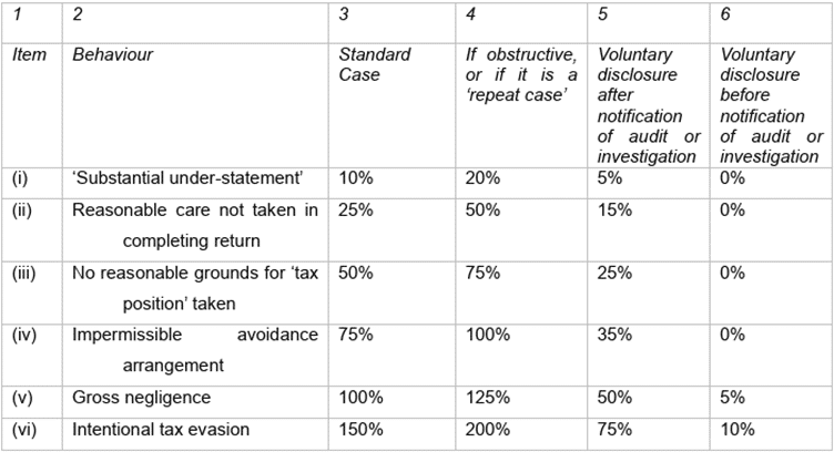 Among the most relevant for taxpayers are revised provisions dealing with Suspensions of Payment and the Remission of Understatement Penalties, per the “Understatement penalty percentage table” as contained in section 223 of the TAA: